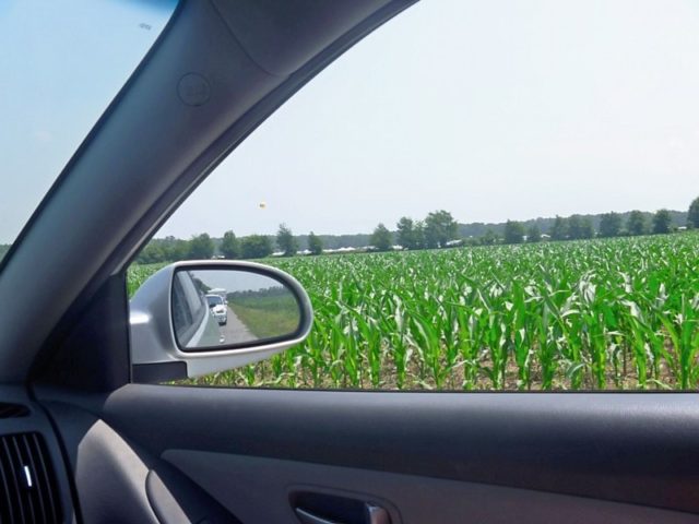 See that speck in the sky past the corn fields?  That's one of the pod balloons for Bonnaroo campsites!  Almost there!