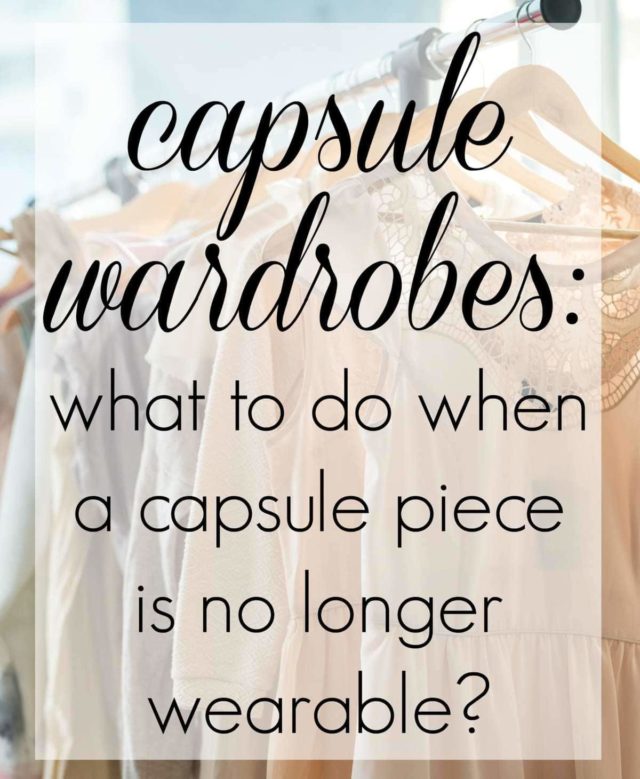 While I plan to get out a needle and thread and stitch my sweater back together, not all capsule wardrobe items can be repaired so easily. And when you’re shopping slow and carefully, you rarely can drive to the mall and pick up a perfect replacement. While one can dress every single day within a capsule, I don’t believe that one should toss every other item in their closet.