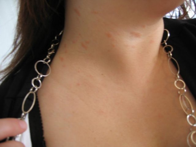 I finished and my entire neck was all red welts – as bad as it was two days ago. Wearing a pair of yoga pants, no bra and a soft knit tank, my torso was looking a bit better. It made me really think that this is environmental and not food or viral or anything.
