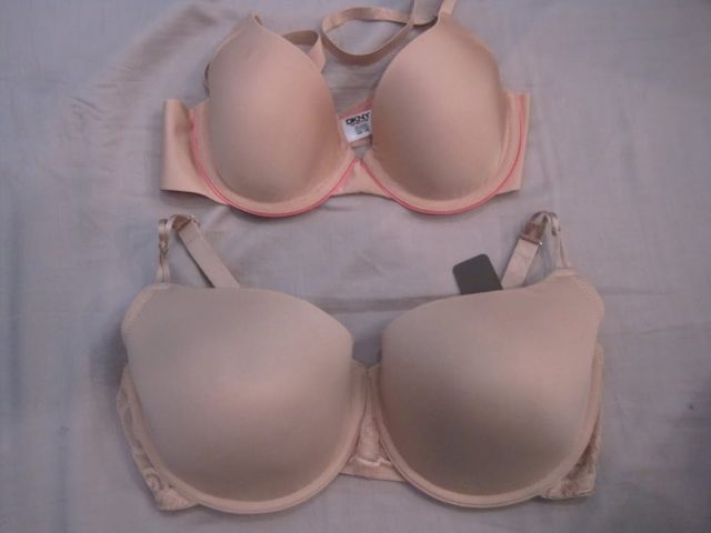 The DKNY, I put it on just for giggles. You know how a too-small bra may give you quad boobs from overfill? Well this bra, I had overfill in my armpits, on top and even under the wires! Talk about a major FAIL! A funny fail, but a fail nonetheless.