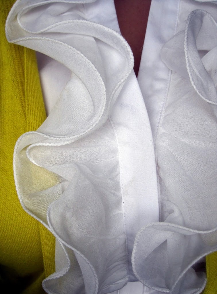 White ruffled blouse – Ann Taylor (no longer available – similar)