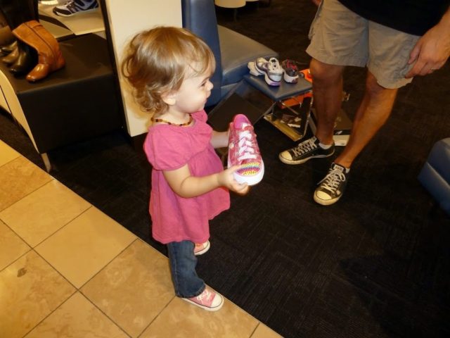 “Daddy want shoes?” What kid wouldn't want bedazzled light-up sneaks with Dora on them? (Sorry kiddo, the answer is no.)