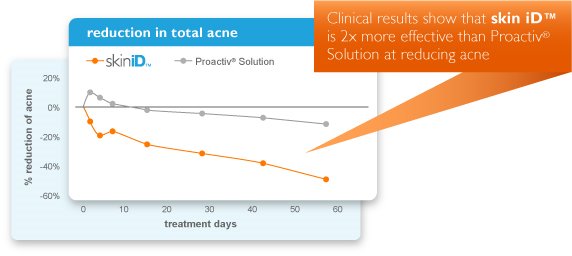 skin iD outperformed Proactiv on all skin types and age groups. For mild, moderate, and severe acne, the results show that a personalized skin iD solution delivers superior results versus Proactiv.