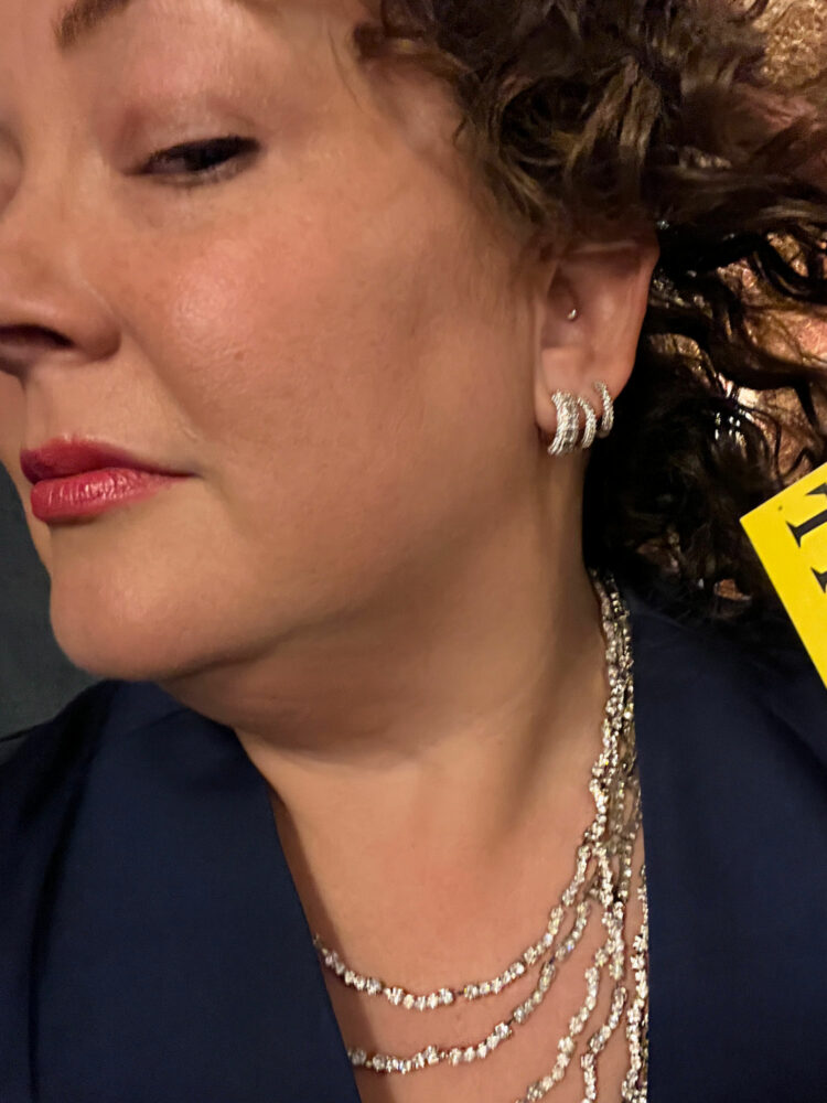 Wearing the Nadri hoops in my two holes, and a pair of Nordstrom pavé hoops that I do not recommend because the post is curved and thick. The necklace is about a decade old and is proof that jewelry, if you have the room, is worth keeping as it usually comes back in style!