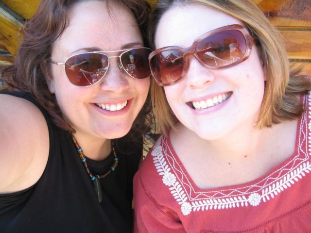 Black tee shirt dress by Jones New York, silver cuff, jade and turquoise necklace from Mexico, black Reef “Sandy” flip flops, cheap aviator sunglasses from a mall kiosk. When it got hot, I pushed up the dress sleeves.
