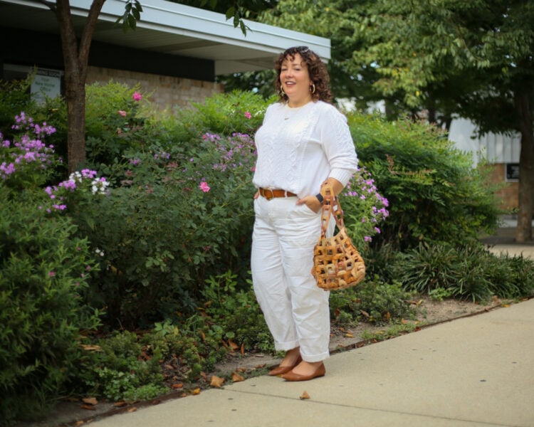 Love it! This is the year that I realized that slightly cropped khakis/chinos, white tie Keds, and a white top is one of my favorite looks. I don’t know why it just clicked for me all of a sudden. I feel completely like myself. Looking forward to wearing them with a navy or cream cable sweater this fall, too!