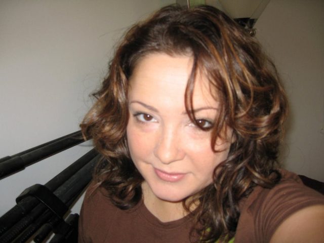 Black cotton wrap shirt from Ann Taylor, white ribbed tank from Old Navy, tan stretch poplin trousers from Caslon, black leather thong heels from Mossimo, silver cuff. Hair is second day, gently brushed out with wood-bristle padded brush. Makeup is L’Oreal true Match concealer in W4-5, Cargo Matte Beach blush in Tenerife, same shadow combo…