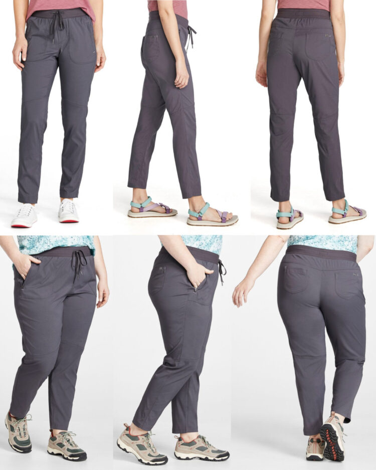 For example, many travel bloggers love the Halle Pant II by PrAna. Those only come up to a size 16. Another favorite, the Rectrek Pant by Outdoor Voices, maxes out at an “XL” that fits a size 12-14 (see update below). Other pairs, like the Dream Slim Trouser from Everlane come in big enough sizes, but are limited to a too-short inseam. Just based on my size, without even considering my build or fit preferences, more than half of the pairs I considered initially were removed from contention.