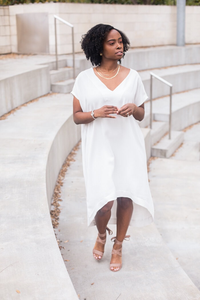 Honestly, this dress is everything I wanted the Geneva dress from Universal Standard to be on me – slouchy and effortless, yet also polished. I do not think I will wear this for work, but I would definitely wear it around on the weekend to run errands, or go to brunch, or dress it up to go out in the evening.