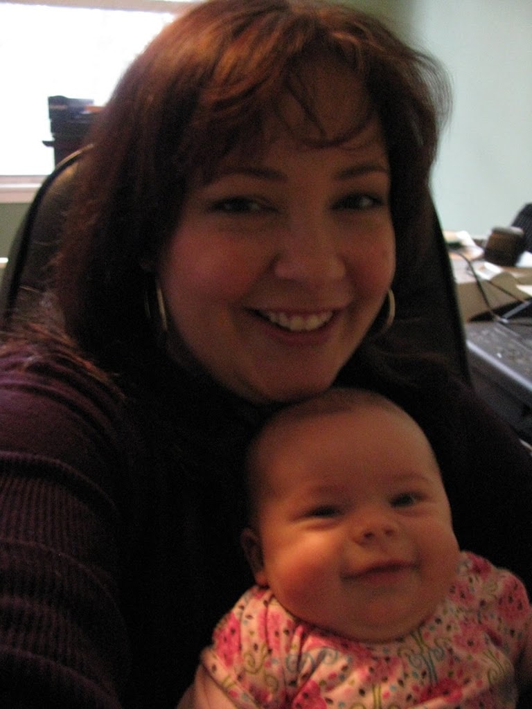 Picture 0071Another day where I am sharing the pictures with Miss Chubbalicious! Actually, Emerson is pretty proportional for a two-month old. Per her pediatrician appointment on Tuesday, her height and head size are in the 90th percentile, her weight is in the 93rd. So big, but proportionally big! I actually liked this smaller self-portrait picture better (it's a typical Emerson happy face), but I forgot the flash so you can't see my makeup.