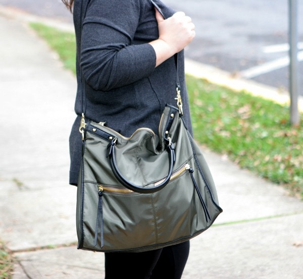 With all my trips and events this summer and fall, I realized I needed a bag like this. Lightweight, can stuff into a bag when not in use without damaging it, tons of pockets, can wear on the shoulder or as a crossbody, wipe-clean surface, appropriate for any season. This would have been perfect for Virgin FreeFest and makes for a fabulous purse/carry-on for flying and sight-seeing. I love that I can remove the long strap and just make it a hand bag, and the strap's length adjusts easily, I can do it even while wearing it. Today's outfit is pretty minimal – exactly like what I would wear for a flight so I decided to whip out the travel bag!