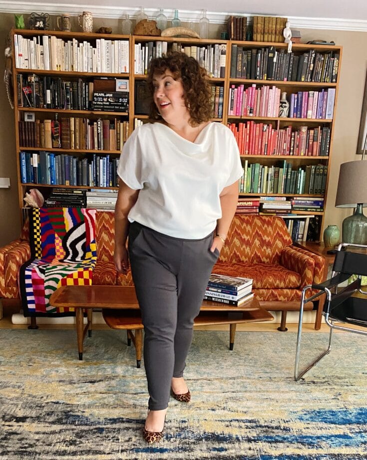 7. Tee Rex in White: This is not part of the sample sale, but it is a Universal Standard staple in my closet. I actually own this tee in several different colors. I am wearing the XS regular; I like the regular versus the petite so I have enough fabric to tuck in and blouse out.