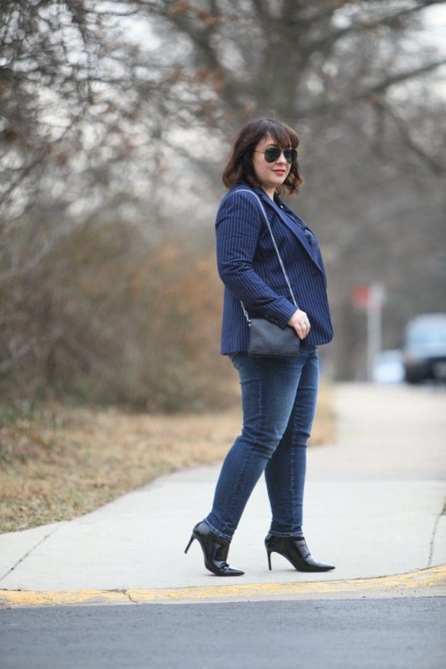 Great denim friendly and stripe-y blazer as the third piece to polish up your look. I’m always in favor of wearing jeans.