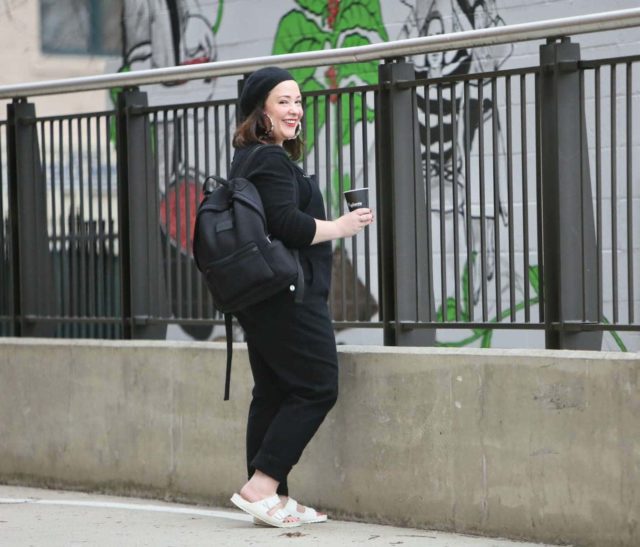 Since leaving behind my own Guess black-with-white-polka-dot overalls in the early ’90s, I have been a full-on hater of overalls, but I have to say you look amazing in that outfit — and even svelte and chic! Those overalls are exceptionally flattering. And I’m about to order my second pair of EVA birks (for inside use only, like slippers — they fit my orthotic), so I’m glad to be able to use your affiliate link. I ordered my first pair at your recommendation and loved them.