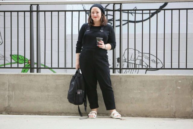 Women, if you want a pair of overalls, get thee some overalls! So many of you email me and leave comments worrying about figure flattery in regard to overalls. Will you look like a toddler, a Weeble Wobble, a try-hard? Can you REALLY wear overalls? Let’s be honest for a second. Do you really think you look svelte, chic, and stylish in those jeggings, beat-up suede ankle booties, and long cardigan? How about that activewear that doesn’t see a single minute in a gym? I say when you’re dressing to work from home, be at home, or run errands about town… wear what makes you happy! If jeggings and tunics make you happy, by all means, rock them. As for athleisure, I too am a fan. But if you’ve been thinking about something outside your uniform I am giving you permission to try it. Hello, my name is Alison and I am an overalls enabler. Here I am wearing overalls from Universal Standard.