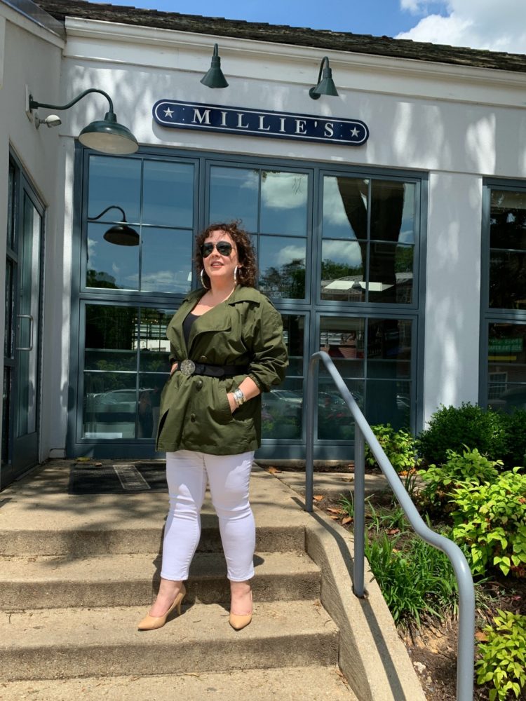 Went to meet two friends for lunch at Millie's on a Friday. It was a gorgeous spring day, not too hot, not humid, a slight breeze. This look was perfect for dining al fresco. You've seen the jacket before in this post and the jeans in this cabi capsule wardrobe. The belt was in this post and the shoes you've seen for years and years.