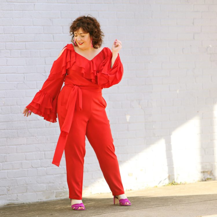 Jumpsuit: Rodarte X Universal Standard c/o Universal Standard (XS) | Shoes: Vince Camuto (old; similar) | Earrings: Baublebar