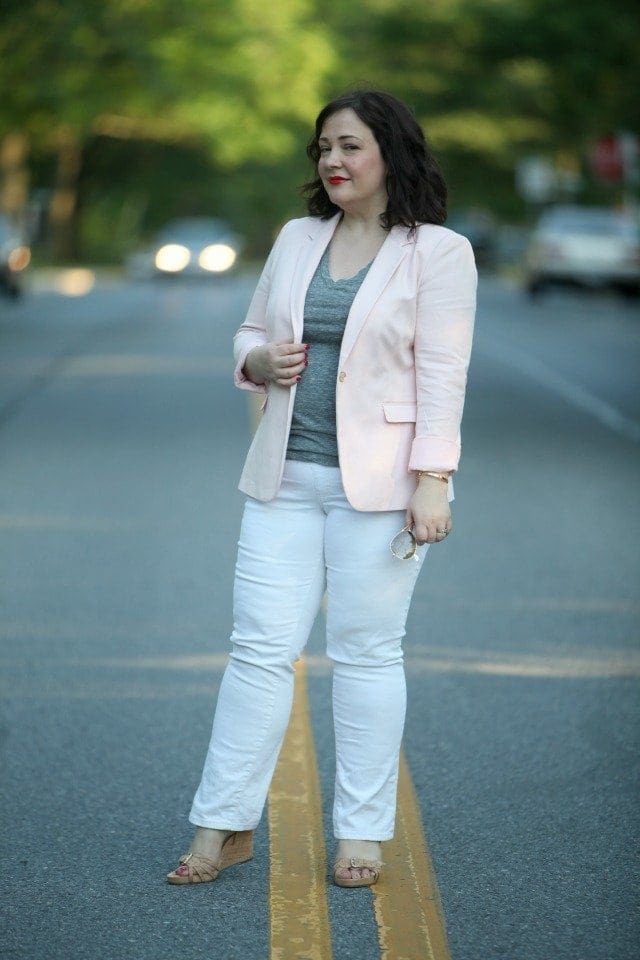 I have been on a blush kick lately and bought a blazer similar to yours and wearing it non stop too. It goes with so many colors. Love this look on you!