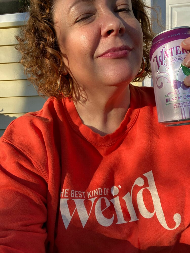 The end of a week, I switched into sweats and sat outside with a sparkling water to enjoy the last bit of sun.