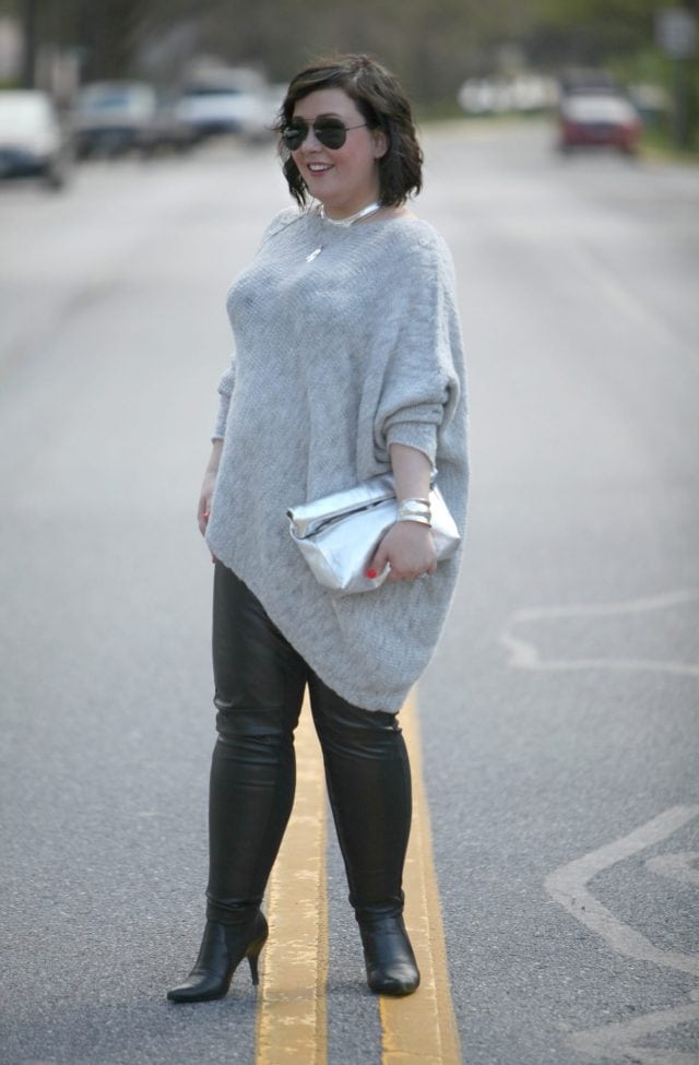 Wardrobe Oxygen, an over 40 fashion blogger wearing a Stella Carakasi alpaca sweater, faux leather leggings, and a Topshop silver leather clutch Wardrobe Oxygen, an over 40 fashion blogger wearing a Stella Carakasi alpaca sweater, faux leather leggings, and a Topshop silver leather clutch Wardrobe Oxygen, an over 40 fashion blogger wearing a Stella Carakasi alpaca sweater, faux leather leggings, and a Topshop silver leather clutch Wardrobe Oxygen, an over 40 fashion blogger wearing a Stella Carakasi alpaca sweater, faux leather leggings, and a Topshop silver leather clutchSweater: c/o Stella Carakasi (L/XL) | Leggings: Rafaella (14) | Boots: VANELi c/o Marmi Shoes (similar) | Choker Necklace: Argento Vivo | Initial Necklace: Etsy | Sunglasses: Ray-Ban | Bag: Topshop (similar) | Cuff Bracelet: Had Forever (similar)