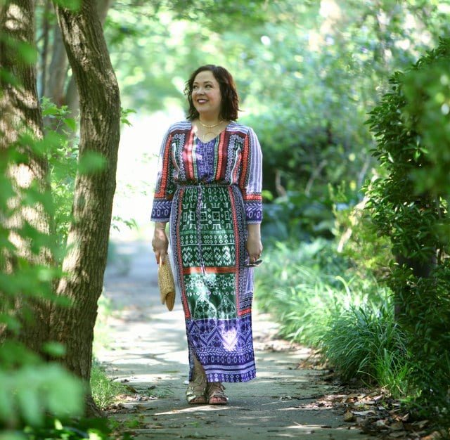 Another day, another dress from the Hemant & Nandita collaboration with Gwynnie Bee! When I wore the other dress from this collection, reader Jetpuffed commented betting I rented this dress too and she was right! This dress made me a bit nervous because of the sleeves and the heat and humidity of the DC area but it is surprisingly comfortable. In fact, Friday night was my friend's birthday party and I wore it to that event, even though I knew the A/C would be struggling against the crowd and most of the time I'd be outside. It's so thin and flowy I was cool and comfortable all evening… and I got so many compliments! People thought this was a dress I found on our road trip, they found it so unique. It was fun to say it was from Gwynnie Bee and anyone can have the dress, enjoy it as long as they like and either send it back for more or buy it at a price lower than retail! Seriously, Gwynnie Bee's selection now is so on point. I've had times over the past four years of being a member where I struggled to find pieces to put in my virtual closet but right now I have 36 pieces in there AND all three pieces I have at home I am seriously considering buying so I can keep them forever! If you're size 10-32 and wish to try Gwynnie Bee, you can use my affiliate link and get a 30 day free trial of the program!